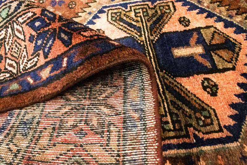 Hamedan - Une beauté enchanteresse, une robustesse à toute épreuve. Ce Hamedan est de qualité supérieure/de bonne qualité. Le charme rustique, les tons naturels chauds du bleu indigo et du rouge et la résistance particulière caractérisent le Hamedan. La laine des hauts plateaux iraniens filée à la main lui confère une douce brillance. Le "nœud turc" assure la robustesse de la surface. Les Hamedan sont considérés comme les plus simples des tapis persans. Ils sont traditionnellement noués à la main dans les villages autour de la ville iranienne de Hamedan. Chaque tapis est une pièce unique pleine de fantaisie. De petites irrégularités dans le motif l'indiquent. Les Hamedan sont de magnifiques tapis utilitaires d'un rapport qualité-prix intéressant.