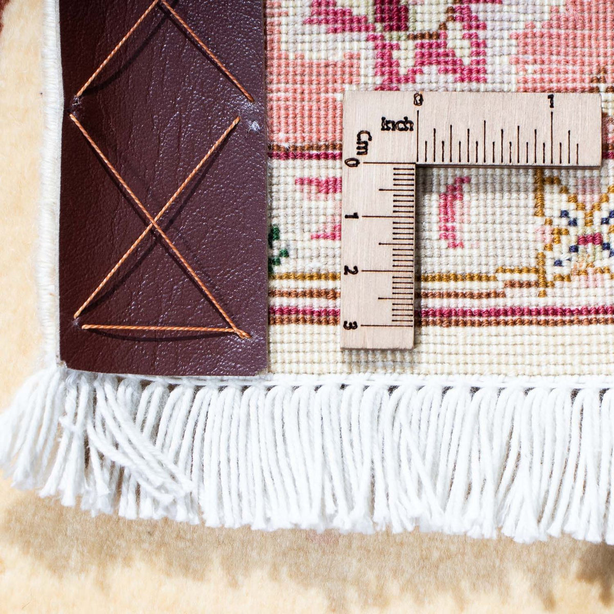 Les tapis noués à la main sont traditionnellement considérés comme le summum de la qualité parmi les différents types de tapis. Selon le type de nœud, ils se distinguent par leur durabilité exceptionnelle et leur grande résistance – ils peuvent durer plusieurs générations. La finesse du nouage influence fortement les détails des ornements et motifs : plus le nouage est dense, plus le dessin est raffiné. Cette précision exige non seulement du temps, mais aussi un haut niveau de compétence et d’expérience. La densité des nœuds est un indicateur clé de la valeur du tapis, bien qu’une densité élevée ne garantisse pas systématiquement une meilleure qualité – même les tapis à structure plus grossière peuvent être de grande qualité.