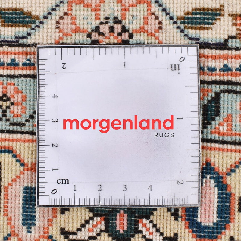 Ce tapis persan finement noué – Täbriz – Royal est fabriqué avec de la laine de liège de haute qualité, avec un travail manuel minutieux et irréprochable. Le Täbriz 40 Raj est l’un des plus beaux de sa catégorie. Ces tapis ont fondé la bonne réputation de l’art persan de tissage. C’est un tapis très populaire de l’une des meilleures régions de la Perse. Ils ont souvent un grand médaillon, placé au centre, composé de beaux motifs floraux, un motif typiquement oriental. Tapis Täbriz ont souvent le nom supplémentaire Raj. On fait la différence entre 40, 50, 60, 70, 80 Raj. Plus le nombre indiqué est élevé, plus le tapis est fin et dense. Raj est un nom de qualité qui se réfère au nombre de nœuds sur une largeur d’environ 70 mm. En raison de l’enchaînement dense, le tapis est résistant, insensible et bien adapté à une utilisation extrême. L’élégance classique et l’opulence des couleurs caractérisent ce tapis noble.