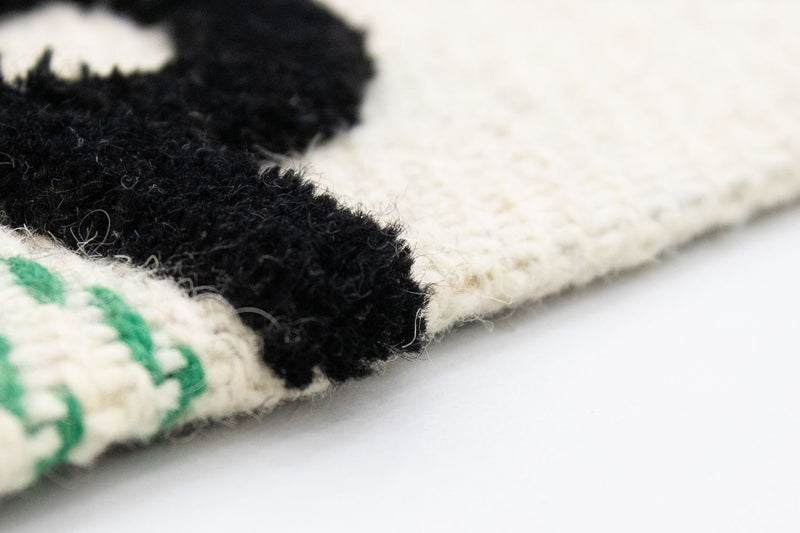 Ce tapis est confectionné exclusivement à partir de laine de mouton filée à la main. Grâce à un travail manuel minutieux, la laine conserve ses propriétés naturelles : elle est robuste, élastique et agréablement douce sous les pieds.