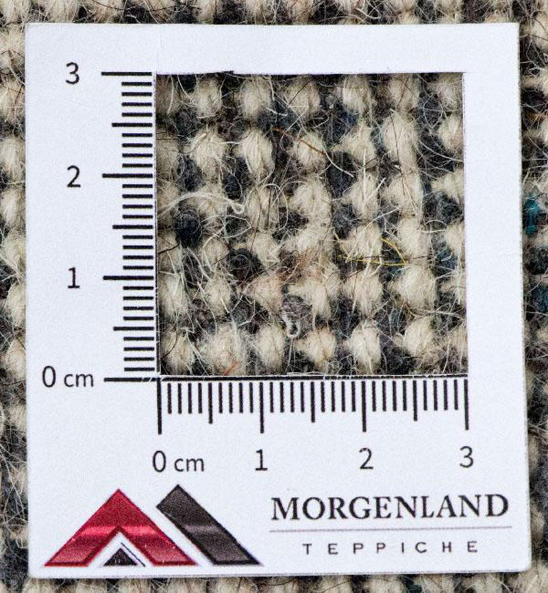 Ce tapis est confectionné exclusivement à partir de laine de mouton filée à la main. Grâce à un travail manuel minutieux, la laine conserve ses propriétés naturelles : elle est robuste, élastique et agréablement douce sous les pieds.