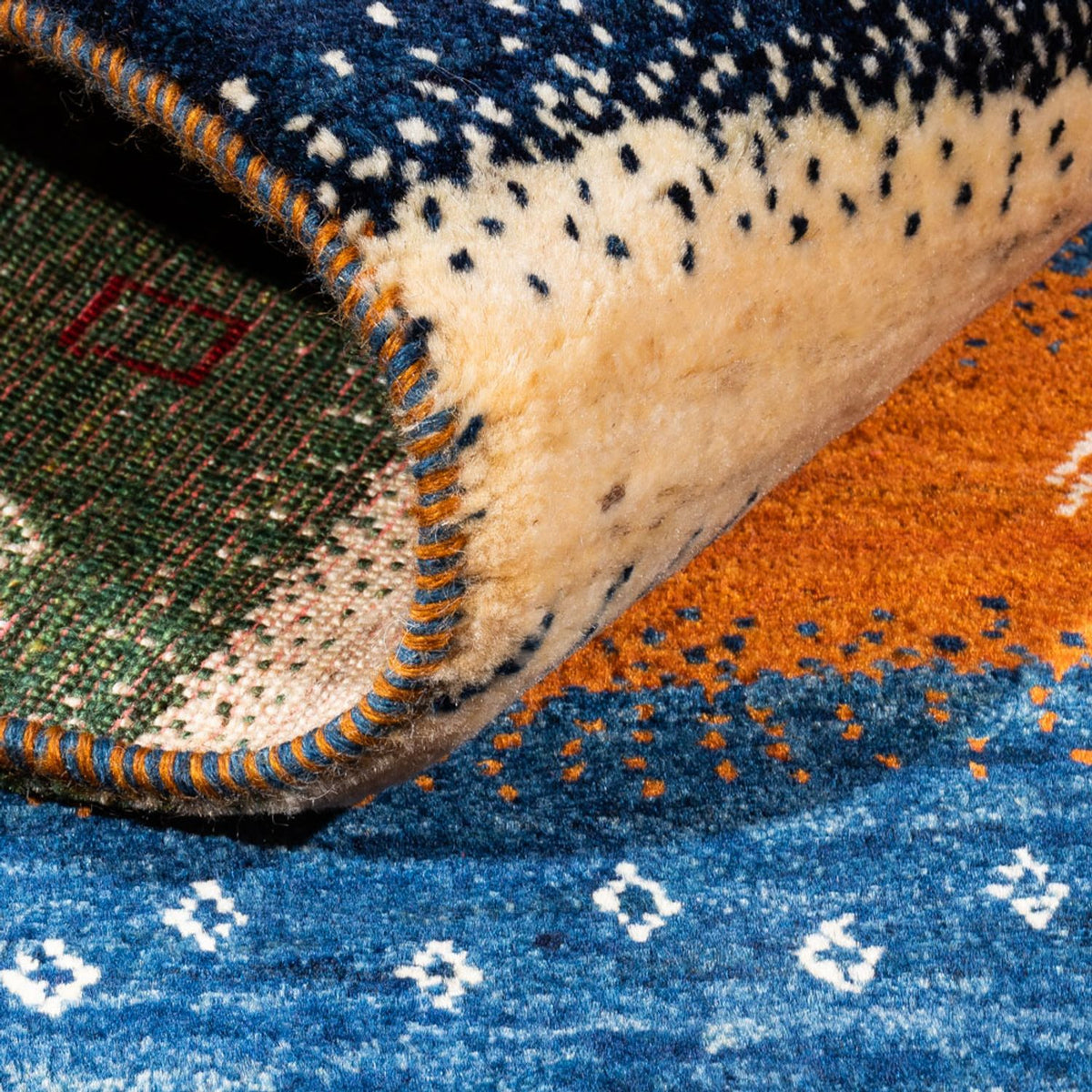 - Traditionnel et complexe, noué à la main par les peuples nomades.