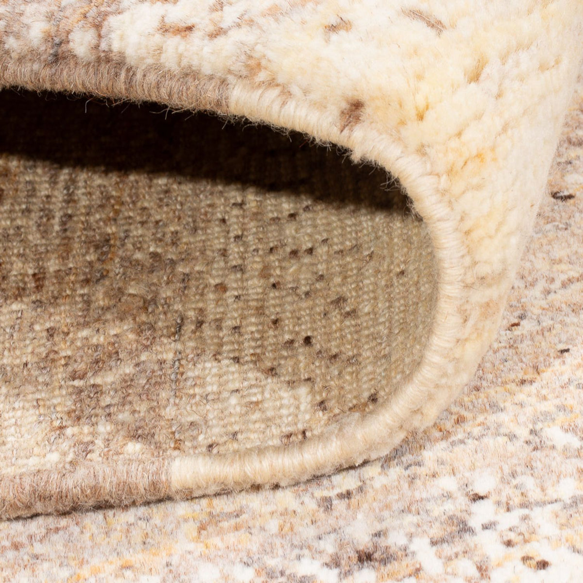 La laine filée à la main confère au tapis une surface légèrement texturée avec un éclat subtil – une marque de véritable artisanat. Le matériau régule la température, repousse la saleté et crée une atmosphère chaleureuse et accueillante.