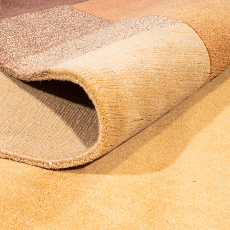 La laine filée à la main confère au tapis une surface légèrement texturée avec un éclat subtil – une marque de véritable artisanat. Le matériau régule la température, repousse la saleté et crée une atmosphère chaleureuse et accueillante.