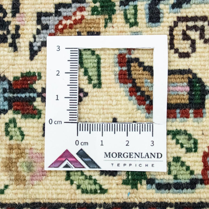 Les tapis noués à la main sont traditionnellement considérés comme le summum de la qualité parmi les différents types de tapis. Selon le type de nœud, ils se distinguent par leur durabilité exceptionnelle et leur grande résistance – ils peuvent durer plusieurs générations. La finesse du nouage influence fortement les détails des ornements et motifs : plus le nouage est dense, plus le dessin est raffiné. Cette précision exige non seulement du temps, mais aussi un haut niveau de compétence et d’expérience. La densité des nœuds est un indicateur clé de la valeur du tapis, bien qu’une densité élevée ne garantisse pas systématiquement une meilleure qualité – même les tapis à structure plus grossière peuvent être de grande qualité.