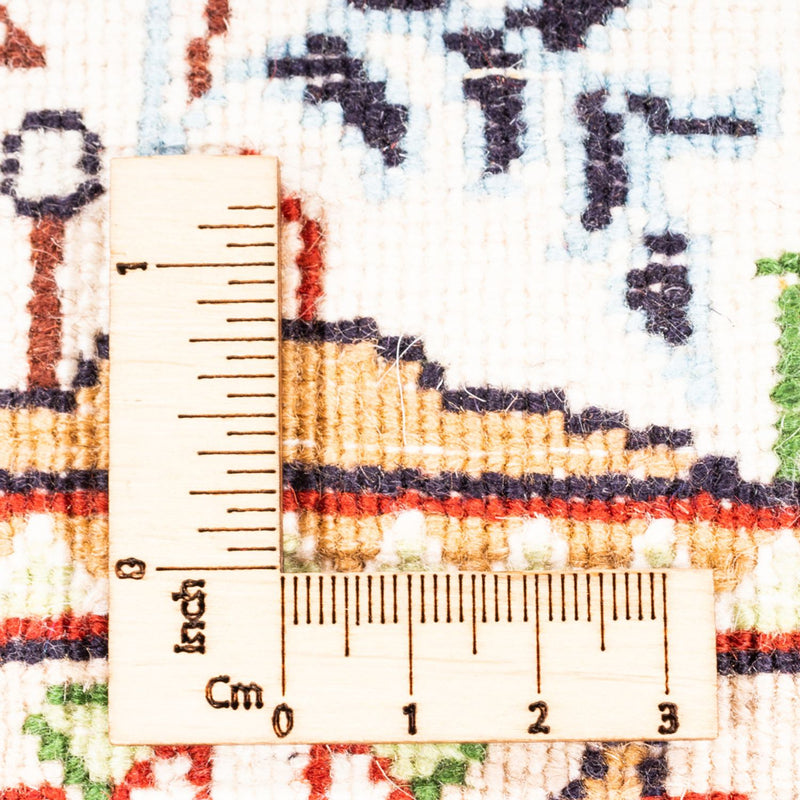 Les tapis noués à la main sont traditionnellement considérés comme le summum de la qualité parmi les différents types de tapis. Selon le type de nœud, ils se distinguent par leur durabilité exceptionnelle et leur grande résistance – ils peuvent durer plusieurs générations. La finesse du nouage influence fortement les détails des ornements et motifs : plus le nouage est dense, plus le dessin est raffiné. Cette précision exige non seulement du temps, mais aussi un haut niveau de compétence et d’expérience. La densité des nœuds est un indicateur clé de la valeur du tapis, bien qu’une densité élevée ne garantisse pas systématiquement une meilleure qualité – même les tapis à structure plus grossière peuvent être de grande qualité.