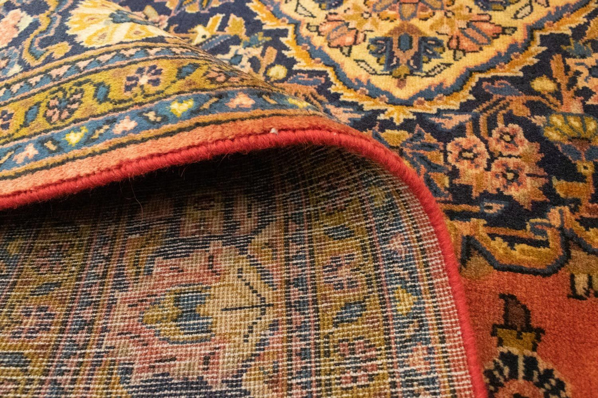 Le sarough est l'une des principales provenances de tapis d'Iran. Le Sarough allie l'habitat moderne à l'art du nouage traditionnel. Grâce à son nouage robuste, le Sarough est un tapis résistant qui offre une isolation acoustique et thermique élevée. La laine utilisée est de grande qualité, brillante et les tapis sont robustes et résistants. Les nœuds sont très fins et le velours relativement haut. Son design intemporel s'intègre sans problème dans l'environnement et confère un sentiment de confort à l'habitat. Aujourd'hui, des tapis de qualités très diverses sont noués à Sarough. La diversité des motifs des tapis est l'une des plus riches et des plus traditionnelles de tout l'Orient et ne peut donc pas être généralisée. Ils sont connus pour leurs magnifiques médaillons ainsi que pour le célèbre motif Mir.
