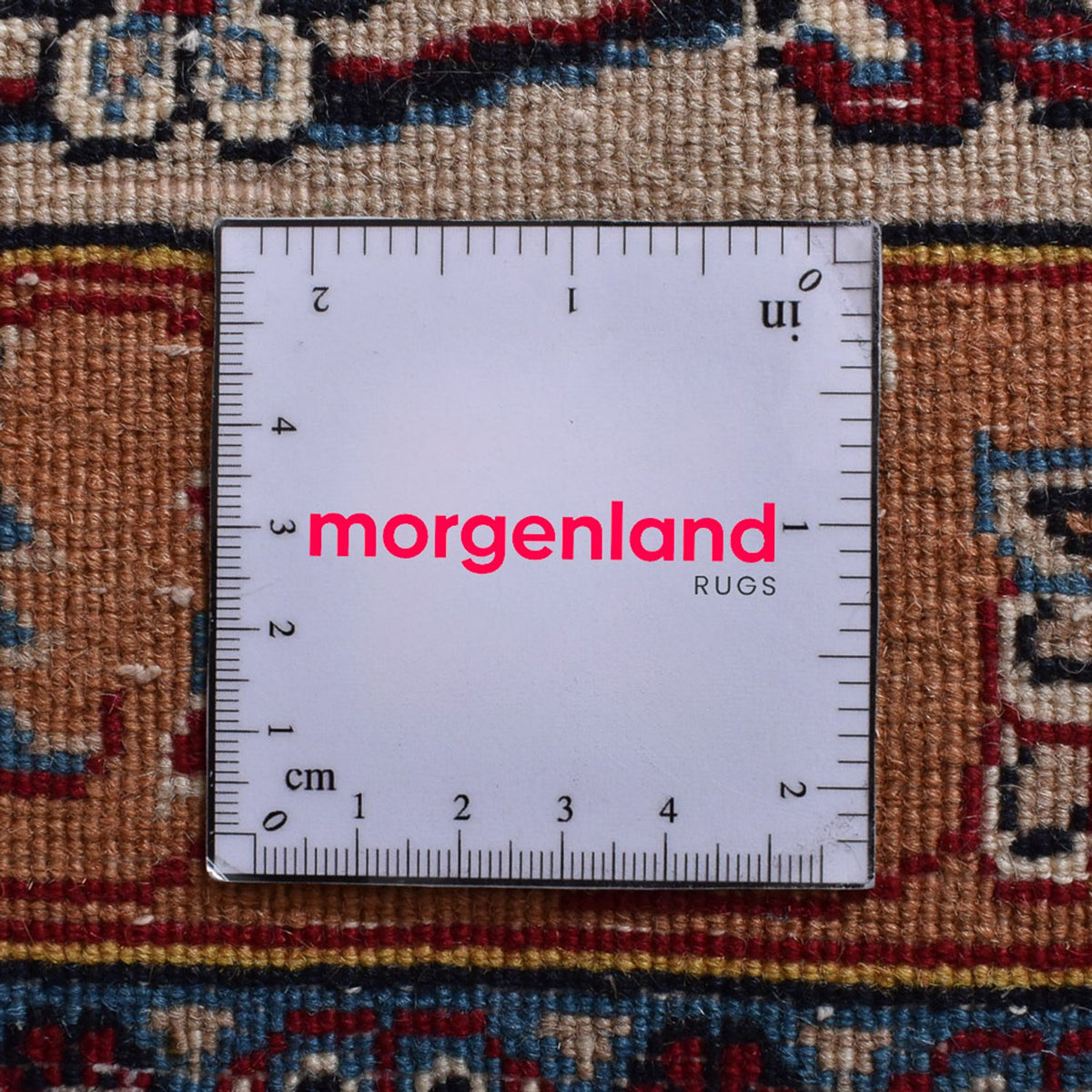 Les tapis noués à la main sont traditionnellement considérés comme le summum de la qualité parmi les différents types de tapis. Selon le type de nœud, ils se distinguent par leur durabilité exceptionnelle et leur grande résistance – ils peuvent durer plusieurs générations. La finesse du nouage influence fortement les détails des ornements et motifs : plus le nouage est dense, plus le dessin est raffiné. Cette précision exige non seulement du temps, mais aussi un haut niveau de compétence et d’expérience. La densité des nœuds est un indicateur clé de la valeur du tapis, bien qu’une densité élevée ne garantisse pas systématiquement une meilleure qualité – même les tapis à structure plus grossière peuvent être de grande qualité.