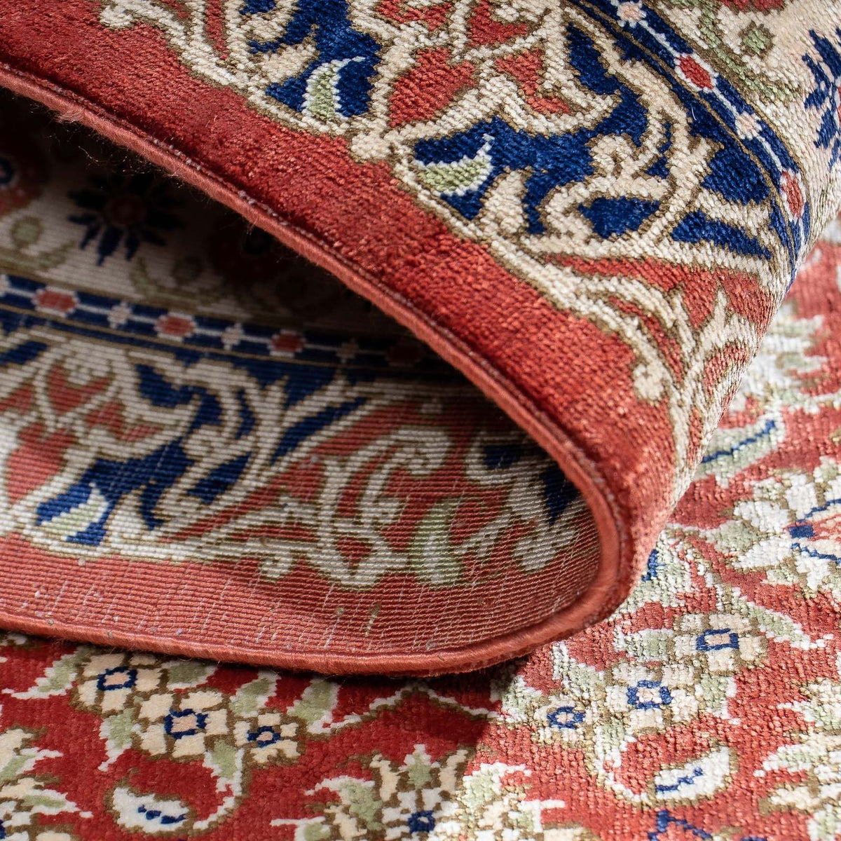 Ces magnifiques tapis sont tissés dans la ville sainte de Ghom en Perse centrale. Le tapis Ghom est l’une des œuvres d’art les plus exclusives de l’Orient. Il existe en trois variantes: laine de liège sur coton, laine de liège avec soie sur coton et soie sur soie. Même la variation Ghom tapis de laine de liège sur le coton est excellente. La laine de liège provient de la tonte du cou d’agneau. Il est doux et gras, extrêmement résistant à la saleté et extrêmement résistant. La laine de liège permet de filer des fils particulièrement fins qui donnent un tissu fin dans des nœuds denses. Les autres variations de tapis Ghom parlent d’elles-mêmes. Plus un tapis contient de soie, plus l’enchaînement est fin, plus le motif est détaillé, plus la qualité du tapis est élevée.