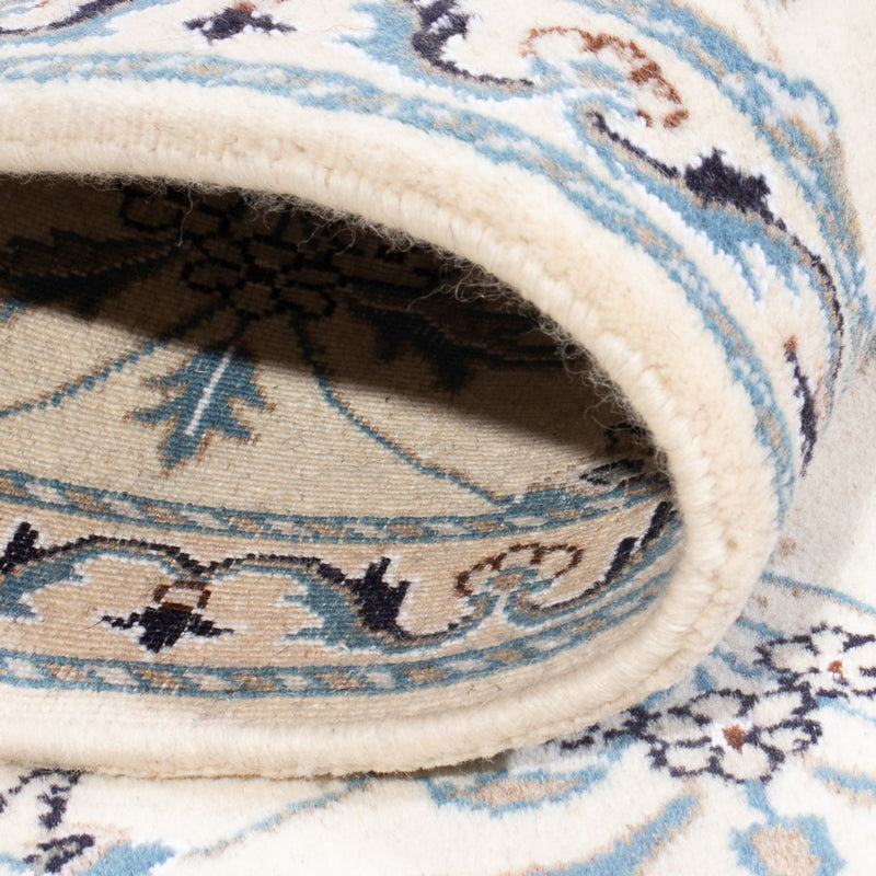 Les tapis Naïn sont noués avec une finesse exceptionnelle. Le matériau utilisé pour le velours est généralement la meilleure laine de liège veloutée et toujours la soie, afin de pouvoir réaliser un dessin exact de médaillons et de motifs all-over. On distingue 4 niveaux de qualité du Naïn, indiqués en "La" : 4La, 6La, 9La, 12La. Il s'agit d'une indication de qualité qui se réfère au nombre de couches de fils contenues dans chaque fil de chaîne. Plus le nombre indiqué est faible, plus la densité de nœuds est élevée, plus le tapis est fin et dense. Les Naïns comptent parmi les plus beaux du monde. Ils sont également très appréciés des collectionneurs. Grâce à leur élégance sobre, les Naïns s'intègrent également dans les intérieurs modernes et apportent du luxe dans la maison.