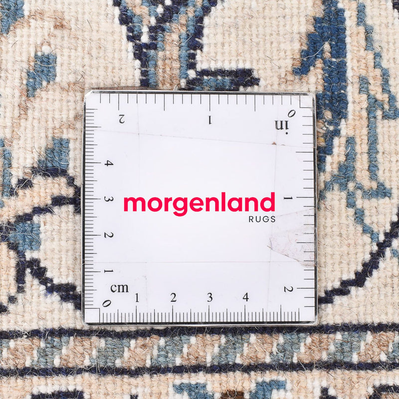 Les tapis Naïn sont noués avec une finesse exceptionnelle. Le matériau utilisé pour le velours est généralement la meilleure laine de liège veloutée et toujours la soie, afin de pouvoir réaliser un dessin exact de médaillons et de motifs all-over. On distingue 4 niveaux de qualité du Naïn, indiqués en "La" : 4La, 6La, 9La, 12La. Il s'agit d'une indication de qualité qui se réfère au nombre de couches de fils contenues dans chaque fil de chaîne. Plus le nombre indiqué est faible, plus la densité de nœuds est élevée, plus le tapis est fin et dense. Les Naïns comptent parmi les plus beaux du monde. Ils sont également très appréciés des collectionneurs. Grâce à leur élégance sobre, les Naïns s'intègrent également dans les intérieurs modernes et apportent du luxe dans la maison.