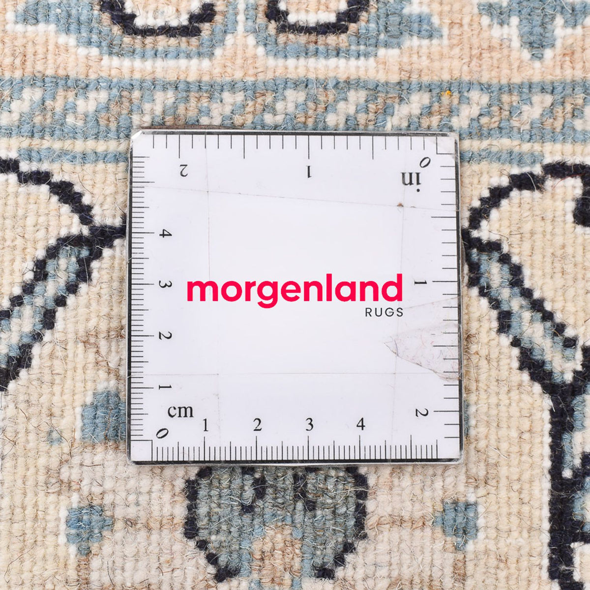 Les tapis Naïn sont noués avec une finesse exceptionnelle. Le matériau utilisé pour le velours est généralement la meilleure laine de liège veloutée et toujours la soie, afin de pouvoir réaliser un dessin exact de médaillons et de motifs all-over. On distingue 4 niveaux de qualité du Naïn, indiqués en "La" : 4La, 6La, 9La, 12La. Il s'agit d'une indication de qualité qui se réfère au nombre de couches de fils contenues dans chaque fil de chaîne. Plus le nombre indiqué est faible, plus la densité de nœuds est élevée, plus le tapis est fin et dense. Les Naïns comptent parmi les plus beaux du monde. Ils sont également très appréciés des collectionneurs. Grâce à leur élégance sobre, les Naïns s'intègrent également dans les intérieurs modernes et apportent du luxe dans la maison.