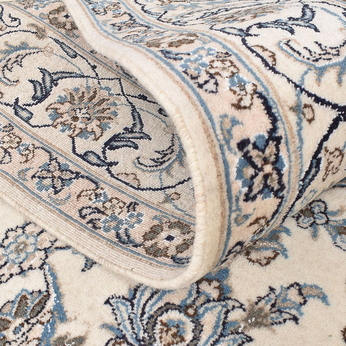 Les tapis Naïn sont noués avec une finesse exceptionnelle. Le matériau utilisé pour le velours est généralement la meilleure laine de liège veloutée et toujours la soie, afin de pouvoir réaliser un dessin exact de médaillons et de motifs all-over. On distingue 4 niveaux de qualité du Naïn, indiqués en "La" : 4La, 6La, 9La, 12La. Il s'agit d'une indication de qualité qui se réfère au nombre de couches de fils contenues dans chaque fil de chaîne. Plus le nombre indiqué est faible, plus la densité de nœuds est élevée, plus le tapis est fin et dense. Les Naïns comptent parmi les plus beaux du monde. Ils sont également très appréciés des collectionneurs. Grâce à leur élégance sobre, les Naïns s'intègrent également dans les intérieurs modernes et apportent du luxe dans la maison.