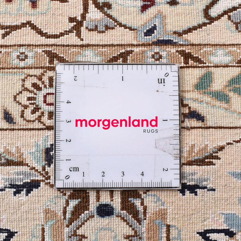 Ce beau tapis persan - Naïn - Premium, d'une rare finesse de nouage, appartient au niveau de qualité 4, le plus élevé, avec environ 890 000 à 1 000 000 nœuds au mètre carré. C'est au fin Naïn 6La que l'on doit la renommée de sa provenance. Il est considéré dans tout l'Orient comme un tapis persan de très grande qualité. Les tapis Naïn sont noués avec une finesse exceptionnelle. Le matériau utilisé pour le velours est généralement la meilleure laine de liège veloutée et toujours de la soie, afin de pouvoir réaliser un dessin exact de médaillons et de motifs All Over. On distingue quatre niveaux de qualité pour le Naïn, indiqués en "La". 4La, 6La, 9La, 12La. Il s'agit d'une désignation de qualité qui se réfère au nombre de couches de fil contenues dans chaque fil de chaîne. Plus le nombre indiqué est faible, plus le tapis est fin et dense. Les nains comptent parmi les plus beaux du monde. Ils sont très appréciés des collectionneurs. Grâce à leur élégance sobre, les nains s'intègrent également dans les intérieurs modernes.