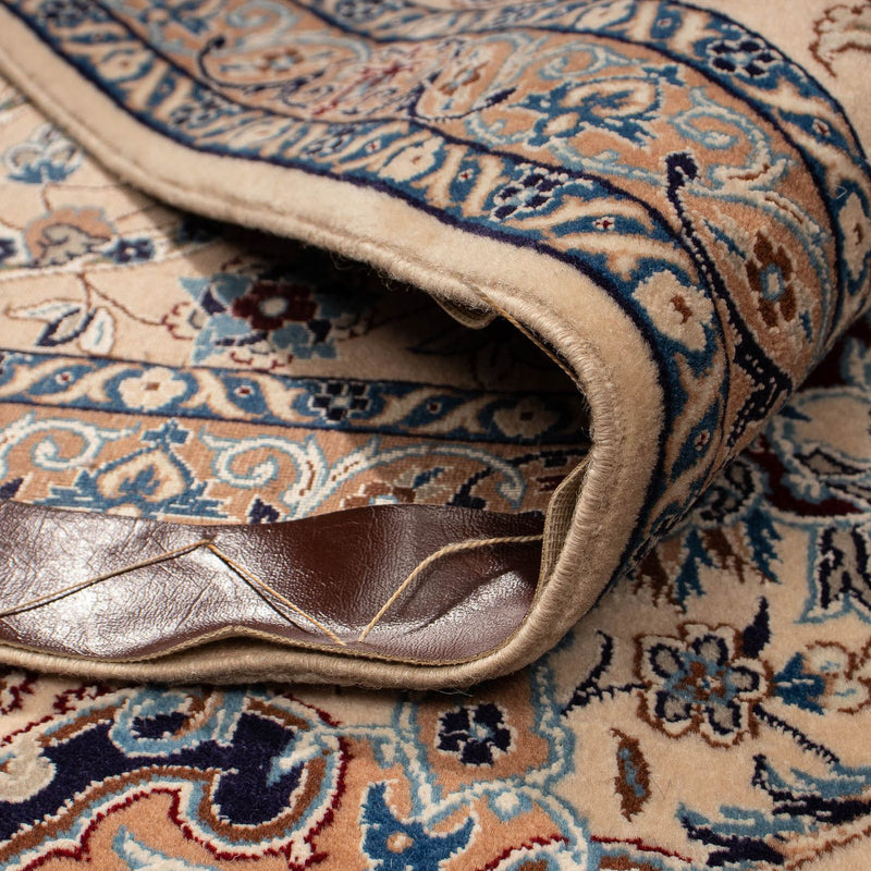Ce beau tapis persan - Naïn - Premium, d'une rare finesse de nouage, appartient au niveau de qualité 4, le plus élevé, avec environ 890 000 à 1 000 000 nœuds au mètre carré. C'est au fin Naïn 6La que l'on doit la renommée de sa provenance. Il est considéré dans tout l'Orient comme un tapis persan de très grande qualité. Les tapis Naïn sont noués avec une finesse exceptionnelle. Le matériau utilisé pour le velours est généralement la meilleure laine de liège veloutée et toujours de la soie, afin de pouvoir réaliser un dessin exact de médaillons et de motifs All Over. On distingue quatre niveaux de qualité pour le Naïn, indiqués en "La". 4La, 6La, 9La, 12La. Il s'agit d'une désignation de qualité qui se réfère au nombre de couches de fil contenues dans chaque fil de chaîne. Plus le nombre indiqué est faible, plus le tapis est fin et dense. Les nains comptent parmi les plus beaux du monde. Ils sont très appréciés des collectionneurs. Grâce à leur élégance sobre, les nains s'intègrent également dans les intérieurs modernes.