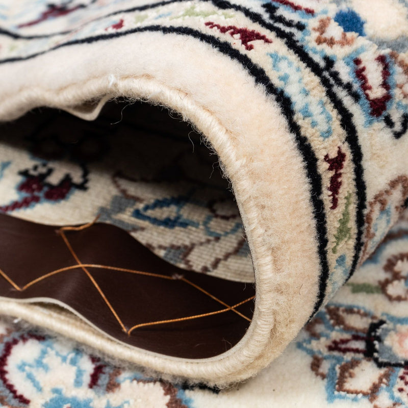 Ce Naïn 9La finement noué à la main s'adapte parfaitement à votre intérieur. Il est composé de laine de liège et de soie très fine, ce qui le rend particulièrement doux sous les pieds et crée une atmosphère luxueuse grâce à sa brillance. Le tapis persan - Naïn - Royal appartient à la catégorie de qualité supérieure 3, avec environ 250.000 à 360.000 nœuds par mètre carré. Cela signifie qu'il est très dense et garantit ainsi une longue durée de vie. Quel que soit le style d'aménagement de votre maison, vous ferez toujours le bon choix en optant pour un tapis Naïn.