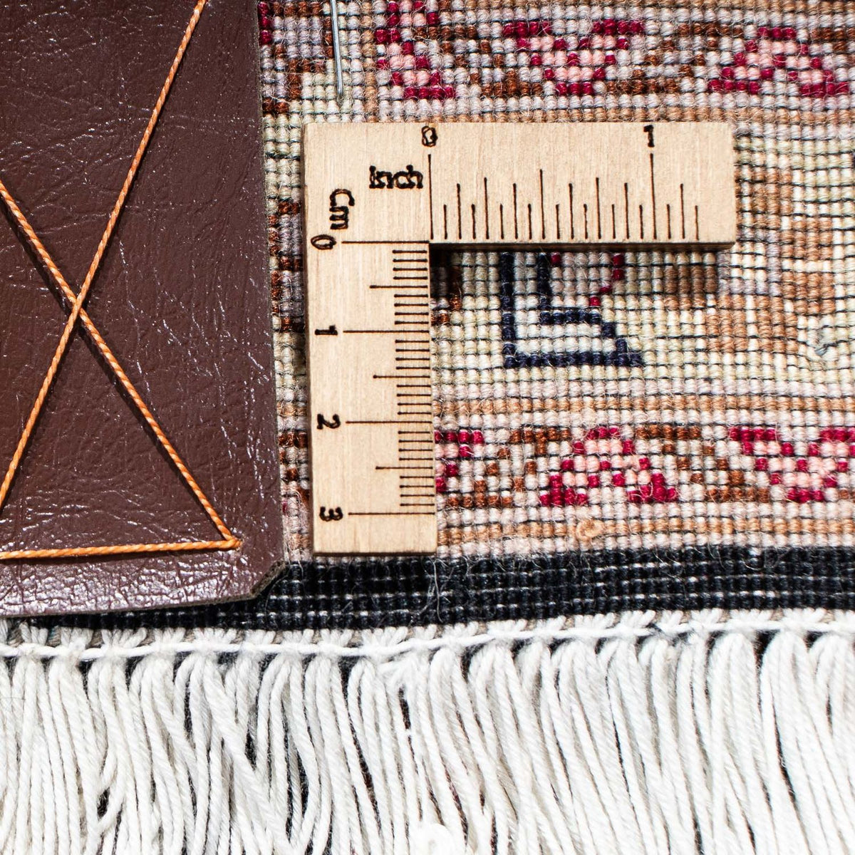 Ce tapis persan finement noué – Täbriz – Royal est fabriqué avec de la laine de liège de haute qualité, avec un travail manuel minutieux et irréprochable. Le Täbriz 40 Raj est l’un des plus beaux de sa catégorie. Ces tapis ont fondé la bonne réputation de l’art persan de tissage. C’est un tapis très populaire de l’une des meilleures régions de la Perse. Ils ont souvent un grand médaillon, placé au centre, composé de beaux motifs floraux, un motif typiquement oriental. Tapis Täbriz ont souvent le nom supplémentaire Raj. On fait la différence entre 40, 50, 60, 70, 80 Raj. Plus le nombre indiqué est élevé, plus le tapis est fin et dense. Raj est un nom de qualité qui se réfère au nombre de nœuds sur une largeur d’environ 70 mm. En raison de l’enchaînement dense, le tapis est résistant, insensible et bien adapté à une utilisation extrême. L’élégance classique et l’opulence des couleurs caractérisent ce tapis noble.